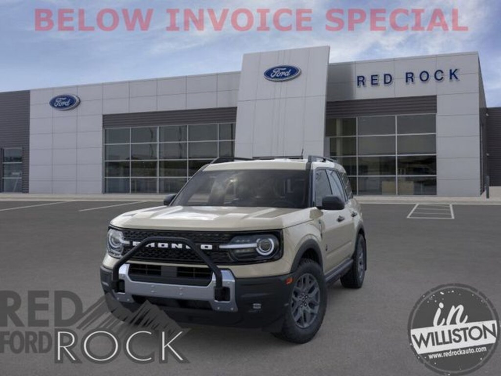 $4,694 off MSRP! 2025 Ford Bronco Sport Big Bend 4D Sport Utility 1.5L EcoBoost 4WD Desert Sand Backup Camera, Bluetooth, 4X4, Heated Seats, 110V/400W AC Power Outlet, 2nd Row Carpeted Seatback, Auxiliary Switches & Wiring, Black Diamond Off-Road Package, Brush Guard, Cargo Management System (Shelf/Divider/Table), Cargo Mat, Class II Trailer Tow Pack w/Trailer Sway Control, Equipment Group 200A, Fender Tie Downs, Front & Rear Black Bumpers, Interior Grab Handle, Recovery Hooks, Wheels: 17" Carbonized Gray Painted Aluminum. 25/30 City/Highway MPG Price includes: $2500 - Retail Customer Cash. Exp. 04/30/2026