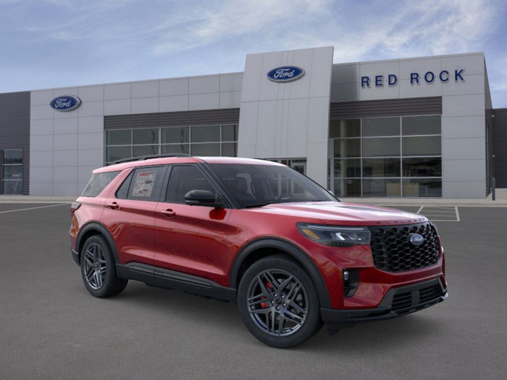 $4,500 off MSRP! 2026 Ford Explorer ST 4D Sport Utility 3.0L EcoBoost V6 4WD Rapid Red Metallic Tinted Clearcoat Backup Camera, Bluetooth, Heated / Cooled Seats, 3rd Row Seats, Auto High-beam Headlights, Ford Connectivity Package (one-Time Purchase - 7 Years), Fully automatic headlights, Memory seat, Multicontour Seats with Front Active Motion, Navigation System, Panoramic Fixed Glass Roof with Power Shade, Power Liftgate, Radio: B&O Sound System by Bang & Olufsen, Remote Control Front Windows, Sun and Sound Package. 18/25 City/Highway MPG Price includes: $3500 - Retail Customer Cash. Exp. 03/31/2026